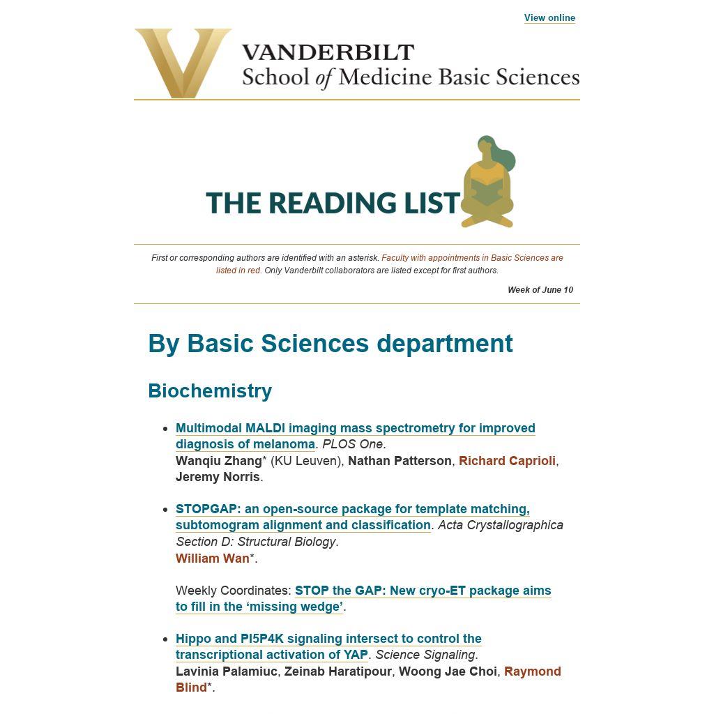 First or corresponding authors are identified with an asterisk. Faculty with appointments in Basic Sciences are listed in red. Only Vanderbilt collaborators are listed except for first authors.
