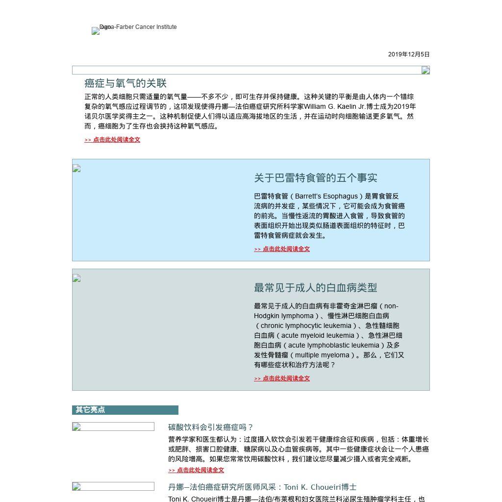 正常的人类细胞只需适量的氧气量——不多不少,即可生存并保持健康。这种关键的平衡是由人体内一个错综复杂的氧气感应过程调节的,这项发现使得丹娜—法伯癌症研究所科学家William G. Kaelin Jr.博士成为2019年诺贝尔医学奖得主之一。这种机制促使人们得以适应高海拔地区的生活,并在运动时向细胞输送更多氧气。然而,癌细胞为了生存也会挟持这种氧气感应。