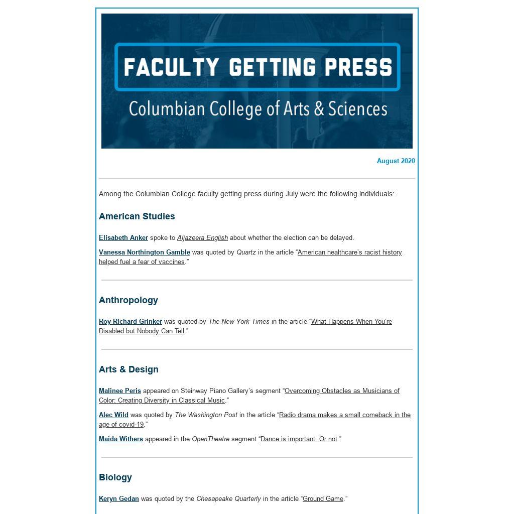 Columbian College of Arts and Sciences 801 22nd St. NW
