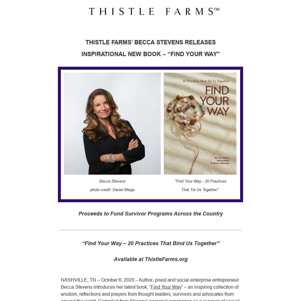 THISTLE FARMS’ BECCA STEVENS RELEASES INSPIRATIONAL NEW BOOK – “FIND YOUR WAY"