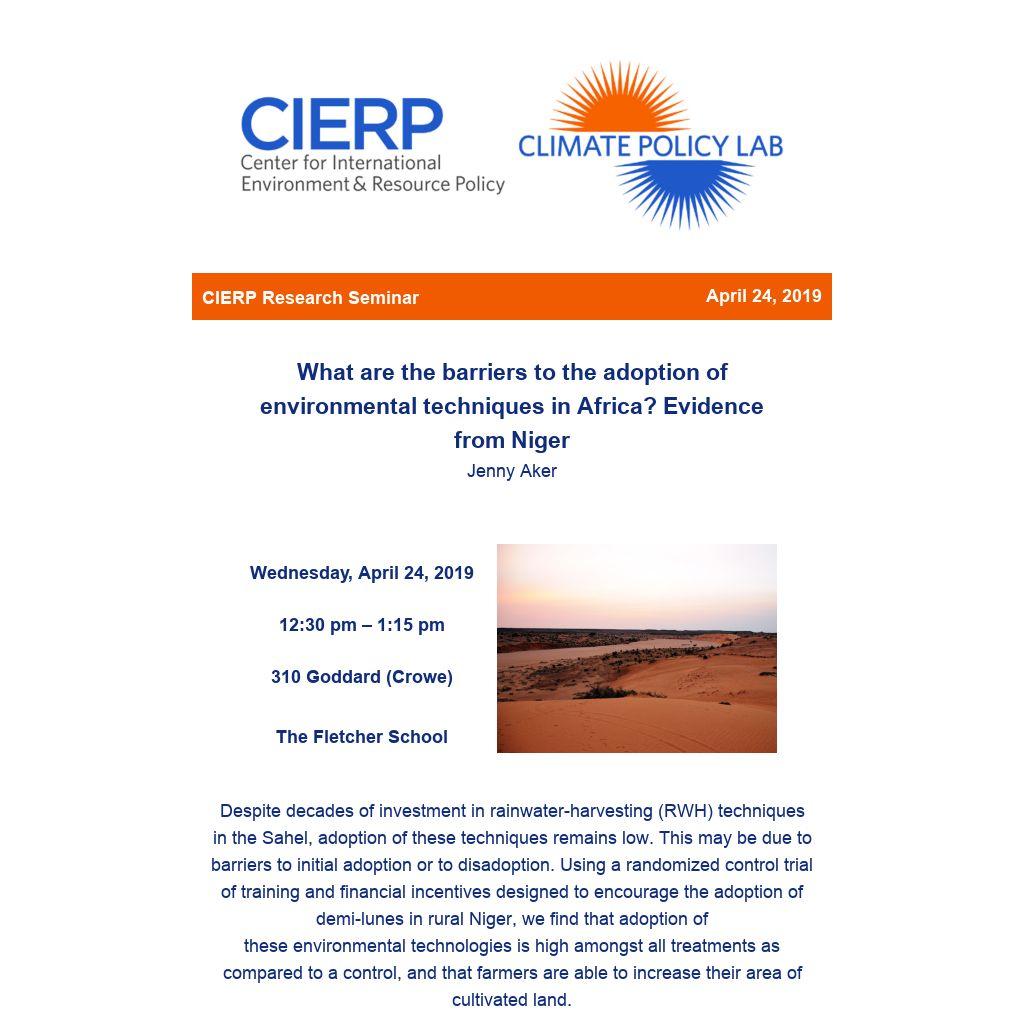 Jenny Aker is a Professor of Development Economics at the Fletcher School and Department of Economics at Tufts University. Jenny also serves as the Director of the Fletcher Leadership Program in Financial Inclusion (FLPFI), the Deputy Director of the Hitachi Center for Technology and International Affairs and the co-Director of the Center for International Environment and Resource Policy (CIERP). Her current work seeks to understand the impact of information technology on development outcomes in sub-Saharan Africa, particularly in the areas of agriculture, agricultural markets, adult education and financial inclusion.