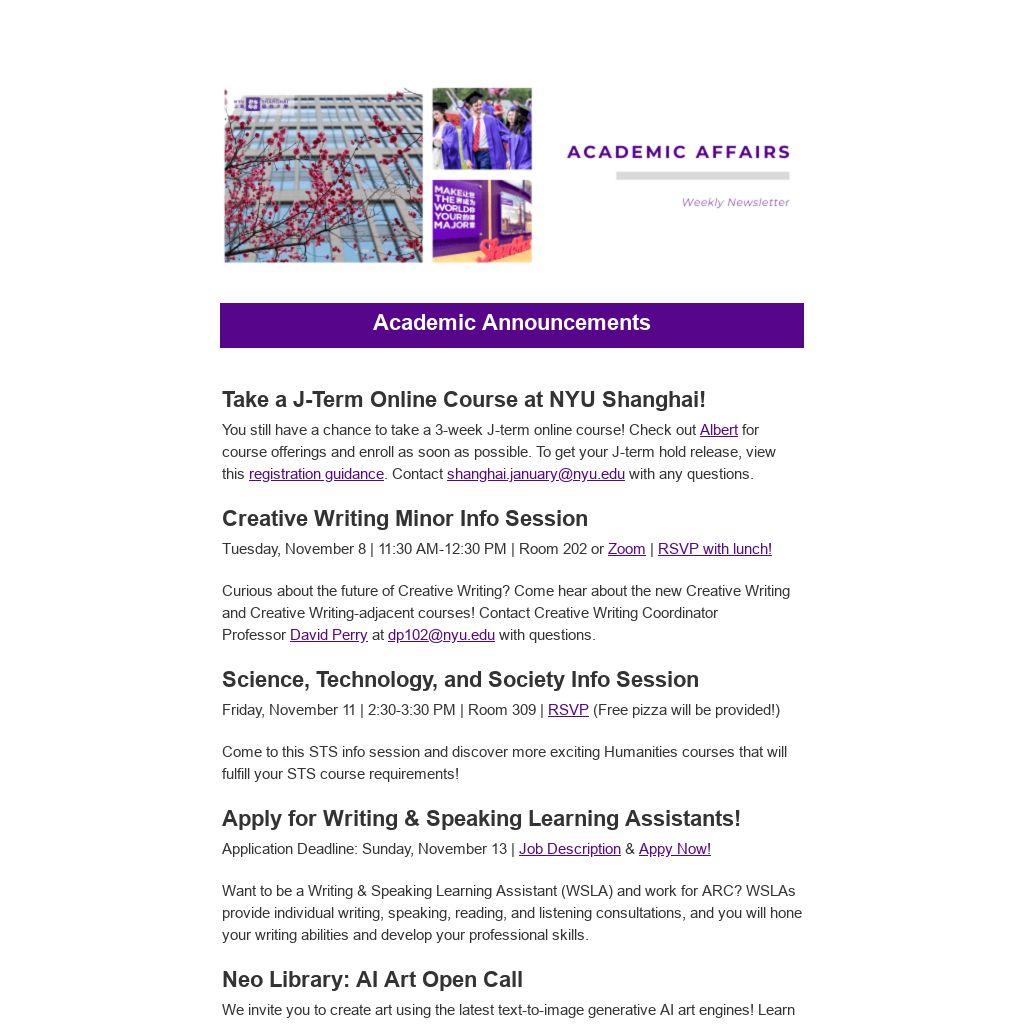 Curious about the future of Creative Writing? Come hear about the new Creative Writing and Creative Writing-adjacent courses! Contact Creative Writing Coordinator Professor