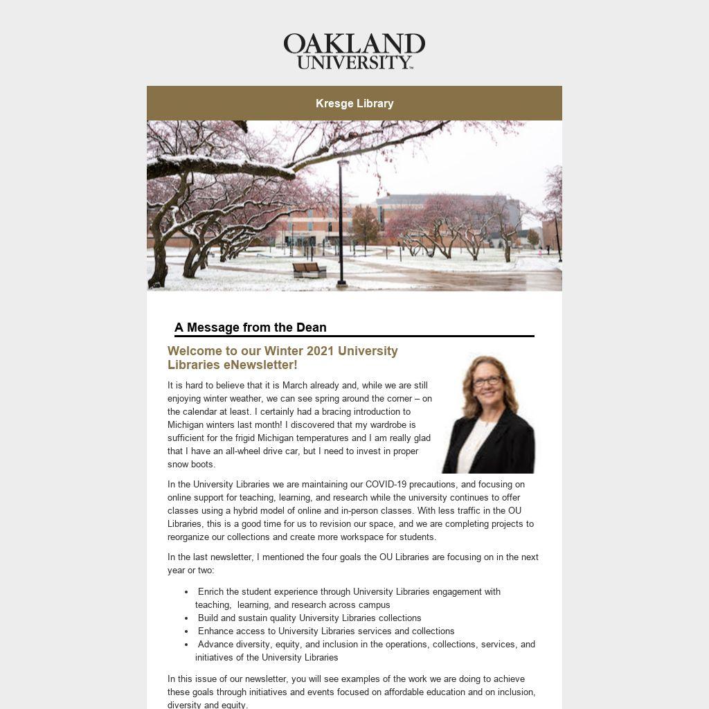 Welcome to our Winter 2021 University Libraries eNewsletter!