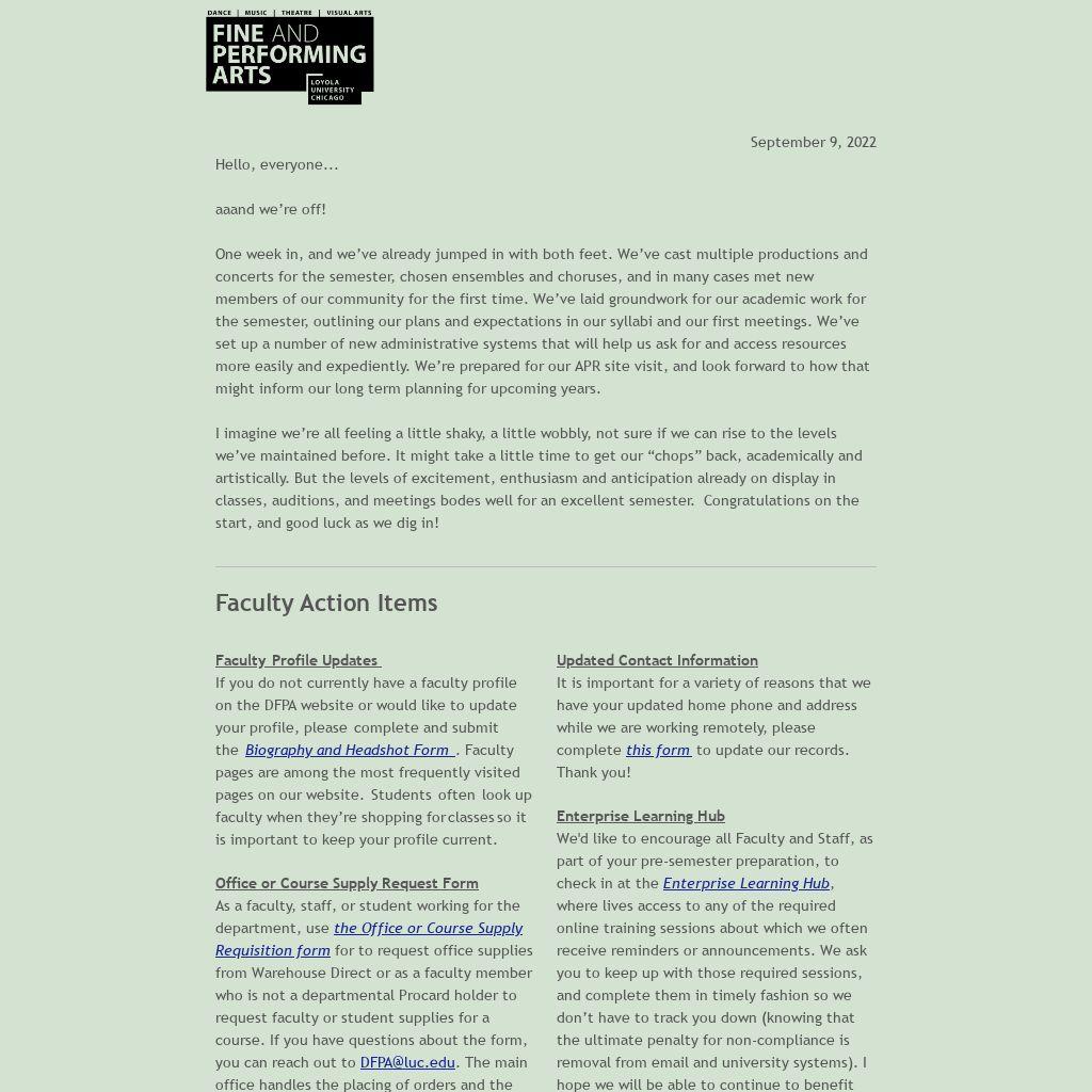 For academic inquiries, contact the DFPA office: 773.508.7510 or DFPA@LUC.edu