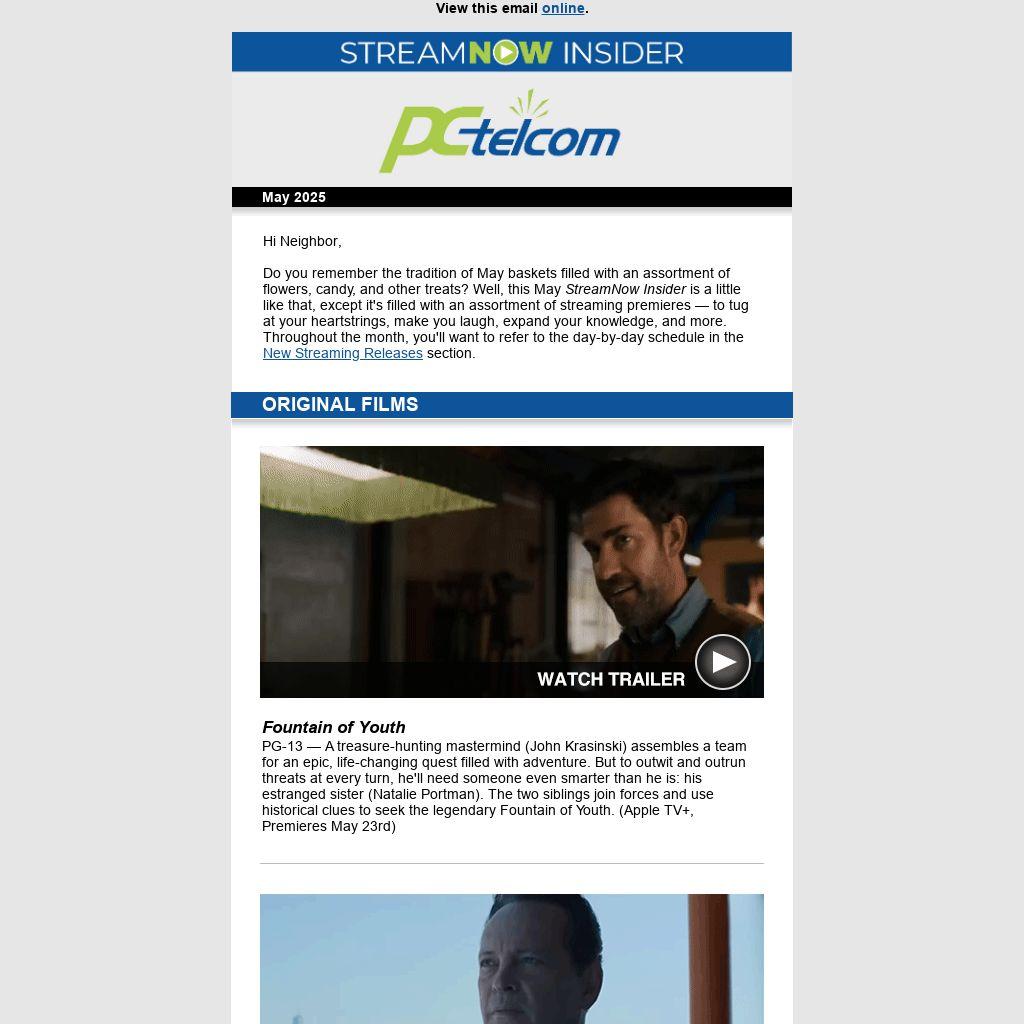 Please note: Streaming services sometimes make last-minute changes to the premiere dates of films and series. This calendar was prepared on April 29th, 2025, but changes may have been made since then. Remember, while the dates below indicate the first day you're able to stream the featured film or series, streaming enables you to enjoy them whenever you'd like!