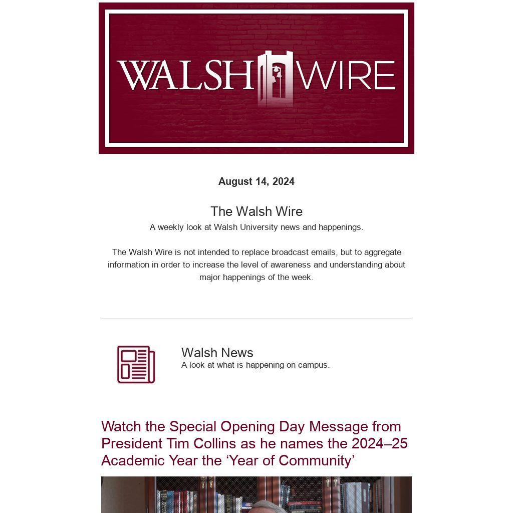 The Walsh Wire is not intended to replace broadcast emails, but to aggregate information in order to increase the level of awareness and understanding about major happenings of the week.