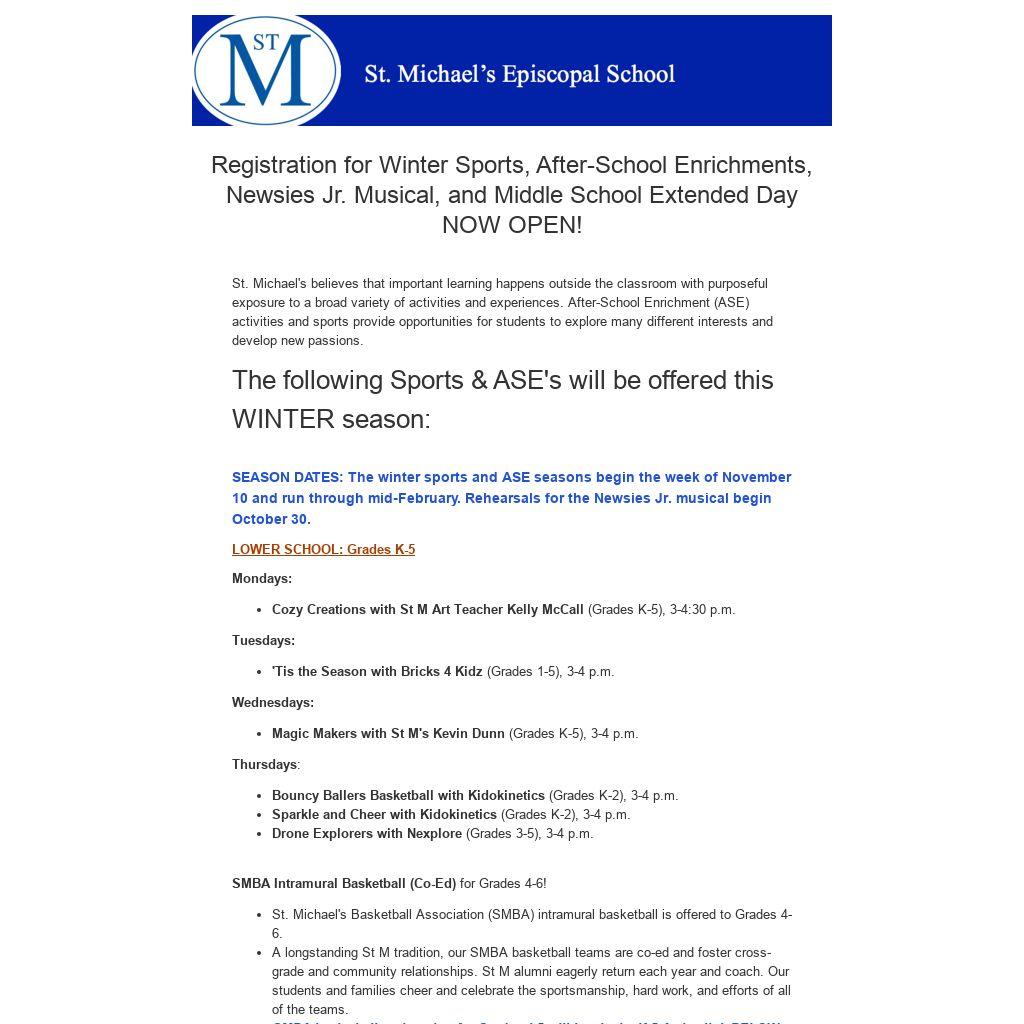 Join us for a musical adventure as St. Michael’s Middle School presents Newsies Jr! All registered 6th-8th grade students will be part of the cast and crew.