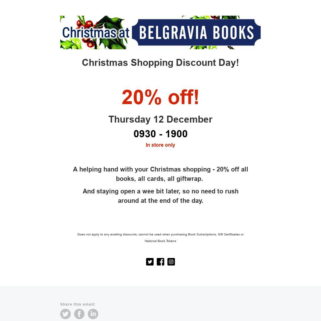 A helping hand with your Christmas shopping - 20% off all books, all cards, all giftwrap.