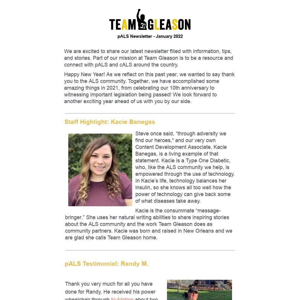 We are excited to share our latest newsletter filled with information, tips, and stories. Part of our mission at Team Gleason is to be a resource and connect with pALS and cALS around the country.