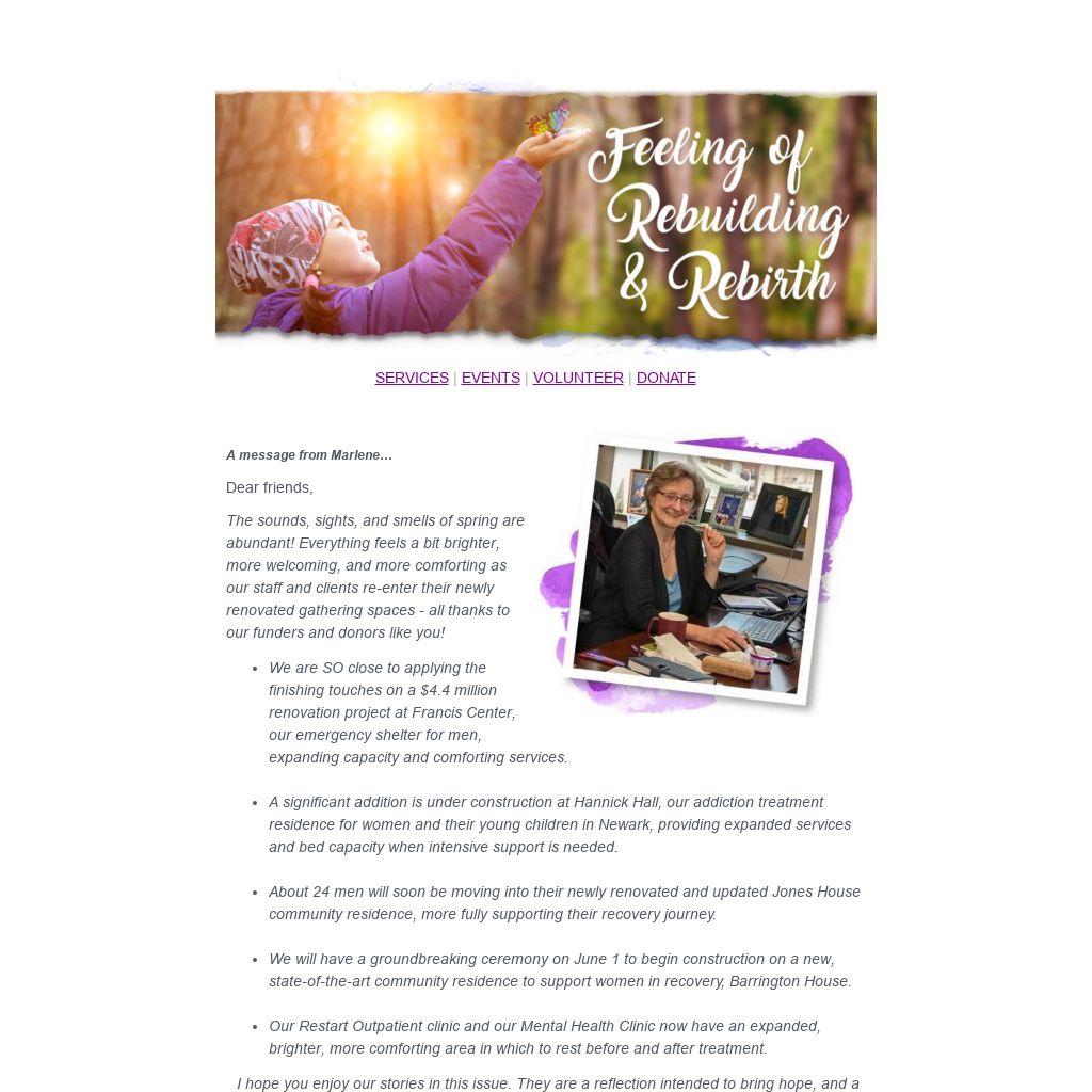 - A significant addition is under construction at Hannick Hall, our addiction treatment residence for women and their young children in Newark, providing expanded services and bed capacity when intensive support is needed.