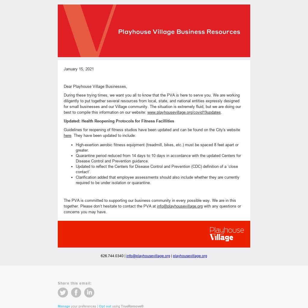 The PVA is committed to supporting our business community in every possible way. We are in this together. Please don’t hesitate to contact the PVA at info@playhousevillage.org with any questions or concerns you may have.