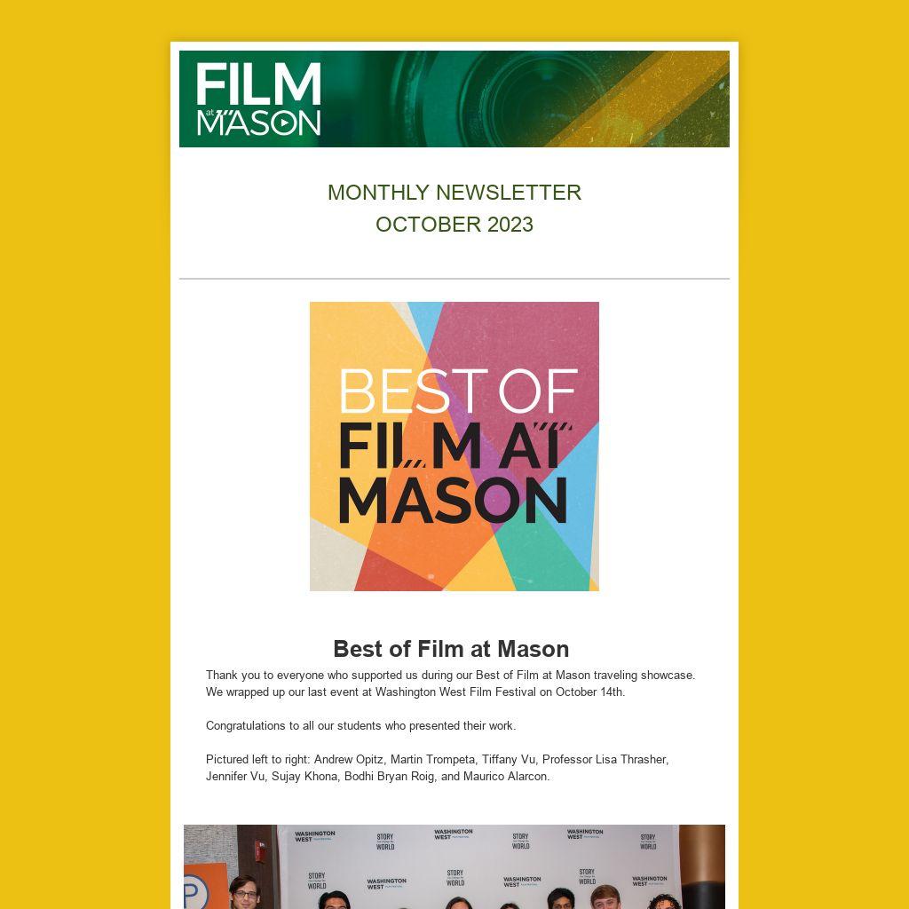 Thank you to everyone who supported us during our Best of Film at Mason traveling showcase. We wrapped up our last event at Washington West Film Festival on October 14th.