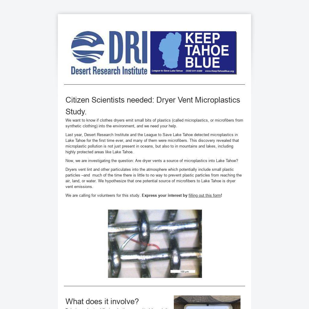 Now, we are investigating the question: Are dryer vents a source of microplastics into Lake Tahoe?