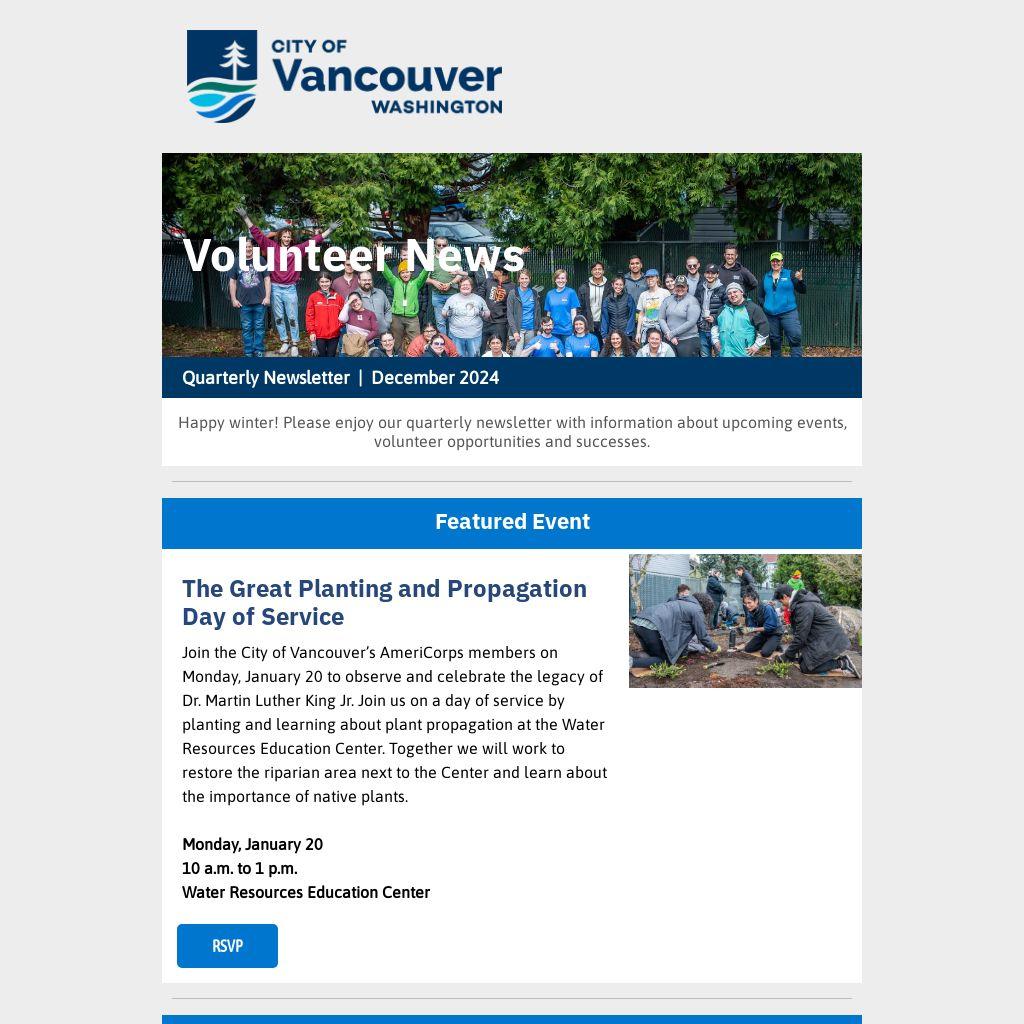Join the City of Vancouver’s AmeriCorps members on Monday, January 20 to observe and celebrate the legacy of Dr. Martin Luther King Jr. Join us on a day of service by planting and learning about plant propagation at the Water Resources Education Center. Together we will work to restore the riparian area next to the Center and learn about the importance of native plants.