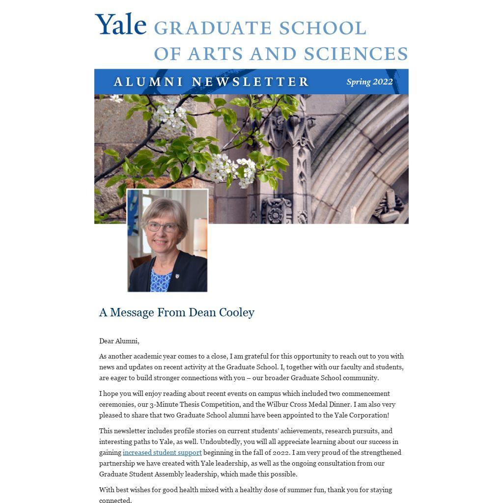This newsletter includes profile stories on current students’ achievements, research pursuits, and interesting paths to Yale, as well. Undoubtedly, you will all appreciate learning about our success in gaining increased student support beginning in the fall of 2022. I am very proud of the strengthened partnership we have created with Yale leadership, as well as the ongoing consultation from our Graduate Student Assembly leadership, which made this possible.