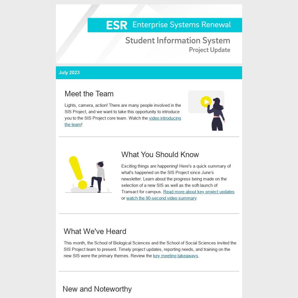 Want to learn more about any of the work happening for the SIS Project? The project’s change team has the following upcoming presentations planned: