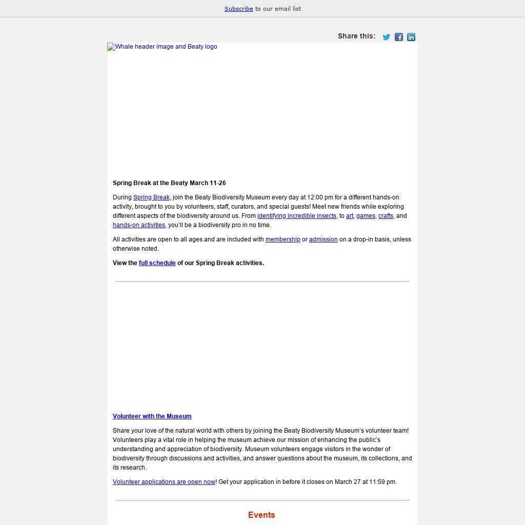 | Spring Break at the Beaty March 11-26