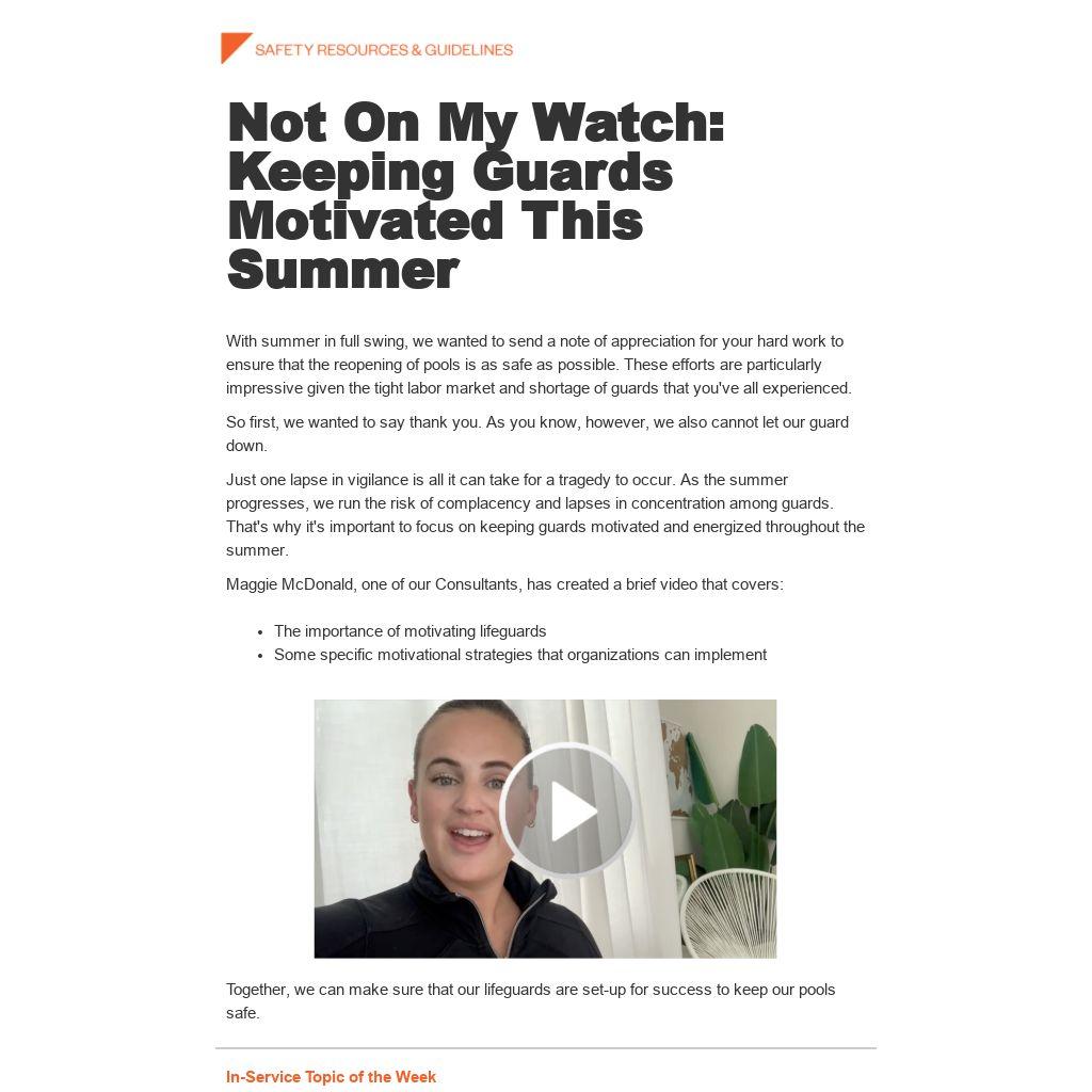 Just one lapse in vigilance is all it can take for a tragedy to occur. As the summer progresses, we run the risk of complacency and lapses in concentration among guards. That's why it's important to focus on keeping guards motivated and energized throughout the summer.