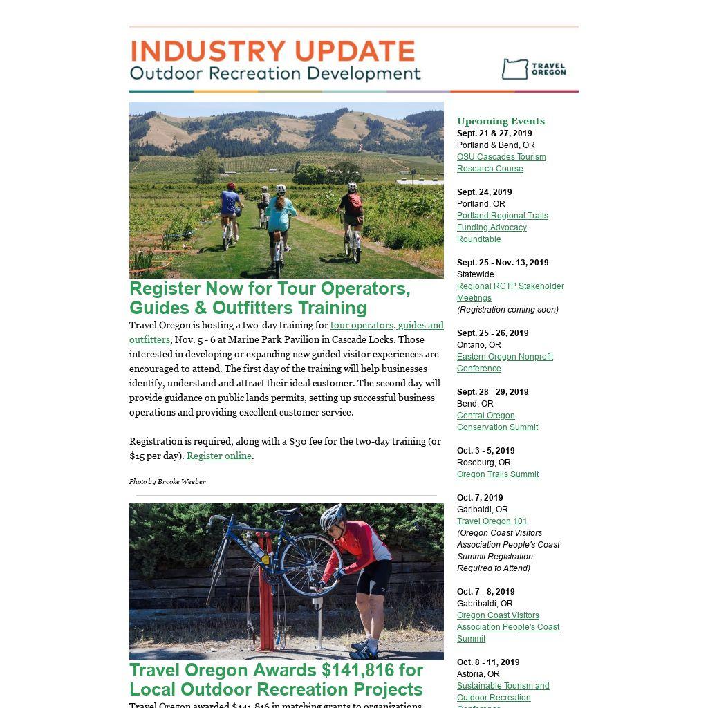Travel Oregon is hosting a two-day training for tour operators, guides and outfitters, Nov. 5 - 6 at Marine Park Pavilion in Cascade Locks. Those interested in developing or expanding new guided visitor experiences are encouraged to attend. The first day of the training will help businesses identify, understand and attract their ideal customer. The second day will provide guidance on public lands permits, setting up successful business operations and providing excellent customer service.