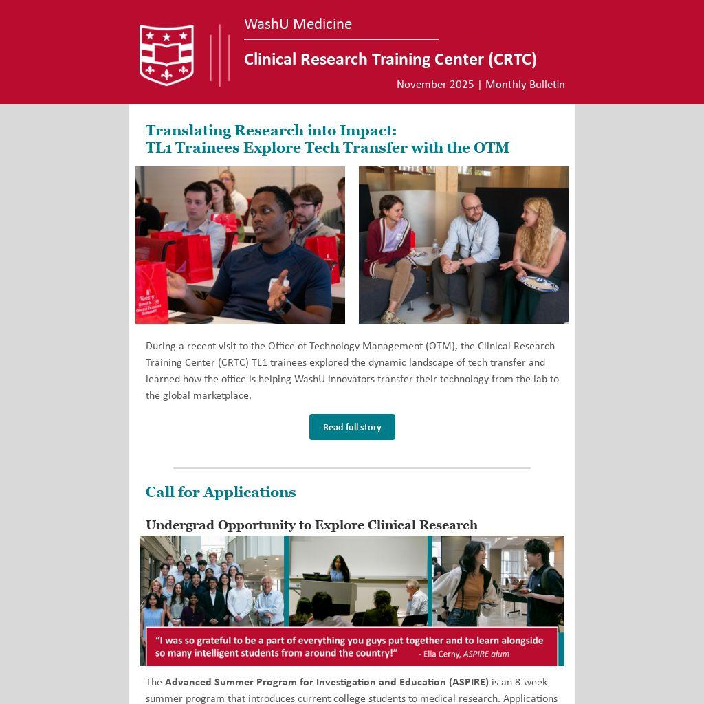 Enhance your research journey by enrolling in Clinical Investigation courses for the spring semester! Eligible individuals not enrolled in a WashU degree program are able to enroll in up to 9 credits of coursework as a non-degree seeking scholar.