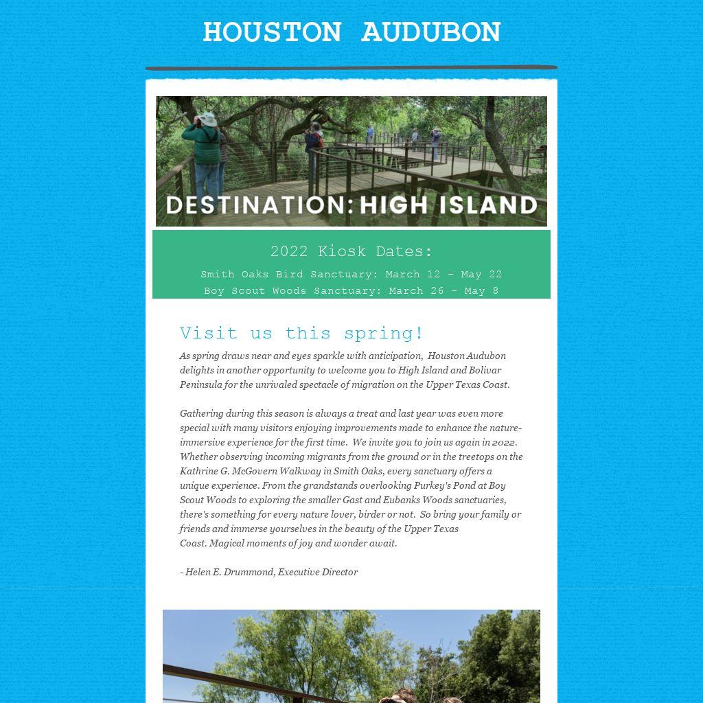Volunteers and staff have worked tirelessly restoring habitat in Smith Oaks. The Grackle Pond loop, which was a favorite spot for many last year, is now in even better condition. Migrants will soon flock to the area, which offers visitors abundant habitat from which to forage. The newer Cattail Island in Smith Pond was created four years ago as part of a nesting expansion project and was finally put to use last spring by five bird species. The McGovern Canopy Walkway continues to be a showstopper, providing new vantages and a stunning view of the Rookery. Already in early March, the Rookery was teeming with Great Egrets, Neotropic Cormorants, and Roseate Spoonbills.