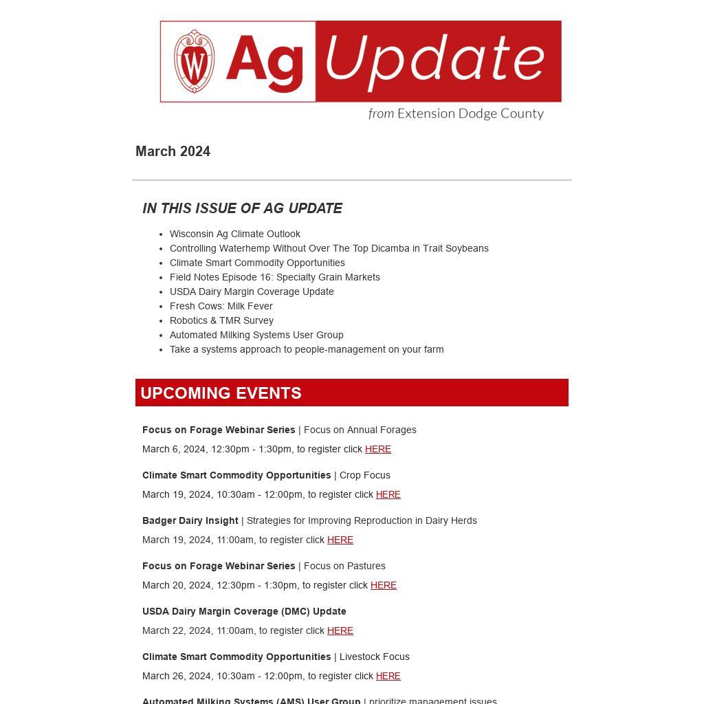 Thinking about how last summer’s drought and our continuing dry conditions are affecting soil moisture? Stay ahead of the weather with the Wisconsin Ag Climate Outlook email list. Get timely updates, expert analysis, and strategic insights tailored to Wisconsin's agricultural landscape. Join the email list now to optimize your farming strategies and mitigate risks.