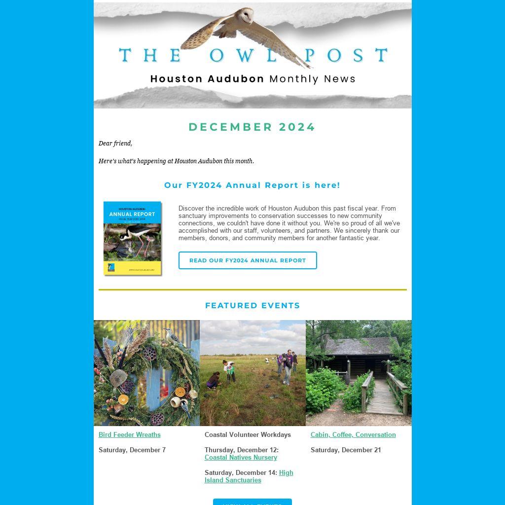 Discover the incredible work of Houston Audubon this past fiscal year. From sanctuary improvements to conservation successes to new community connections, we couldn't have done it without you. We're so proud of all we've accomplished with our staff, volunteers, and partners. We sincerely thank our members, donors, and community members for another fantastic year.