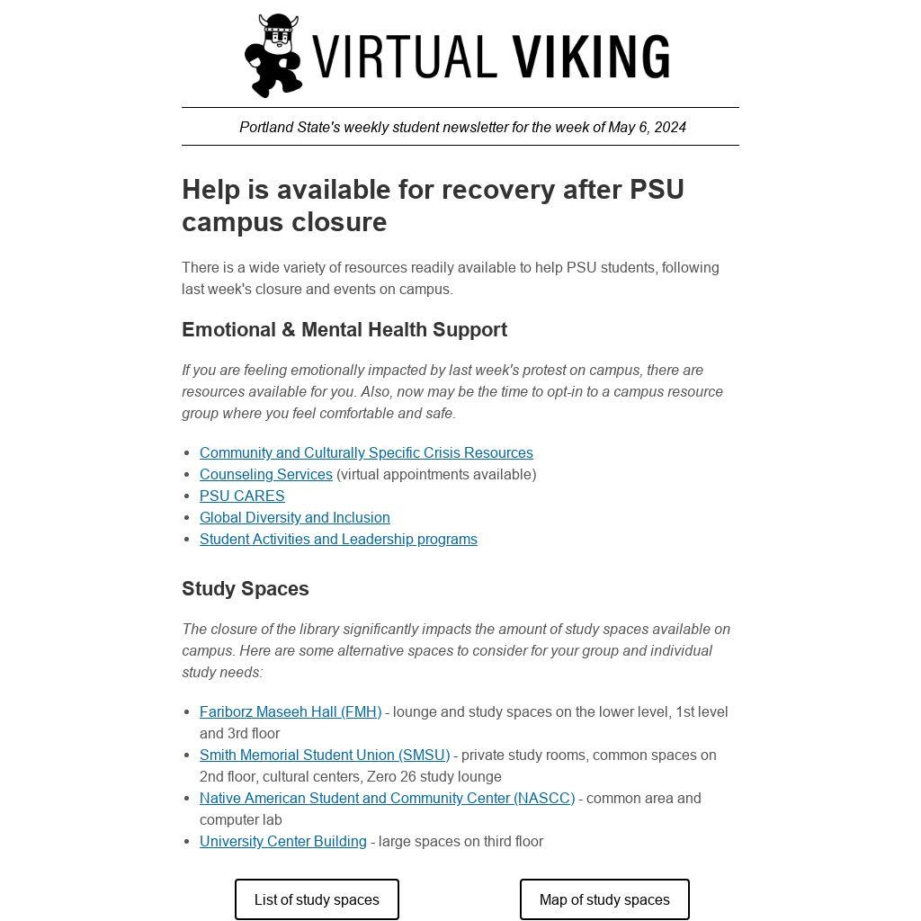 Virtual Viking is Portland State University's student newsletter, published weekly by University Communications. To submit a news item or event, email virtualv@pdx.edu.