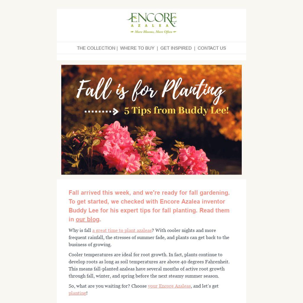 Fall arrived this week, and we're ready for fall gardening. To get started, we checked with Encore Azalea inventor Buddy Lee for his expert tips for fall planting. Read them in our blog.