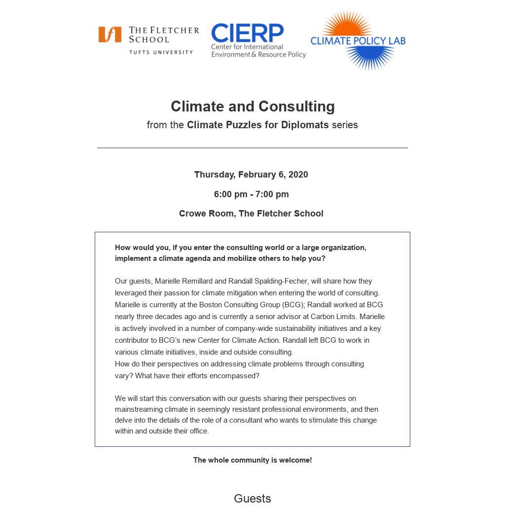 Our guests, Marielle Remillard and Randall Spalding-Fecher, will share how they leveraged their passion for climate mitigation when entering the world of consulting. Marielle is currently at the Boston Consulting Group (BCG); Randall worked at BCG nearly three decades ago and is currently a senior advisor at Carbon Limits. Marielle is actively involved in a number of company-wide sustainability initiatives and a key contributor to BCG’s new Center for Climate Action. Randall left BCG to work in various climate initiatives, inside and outside consulting.