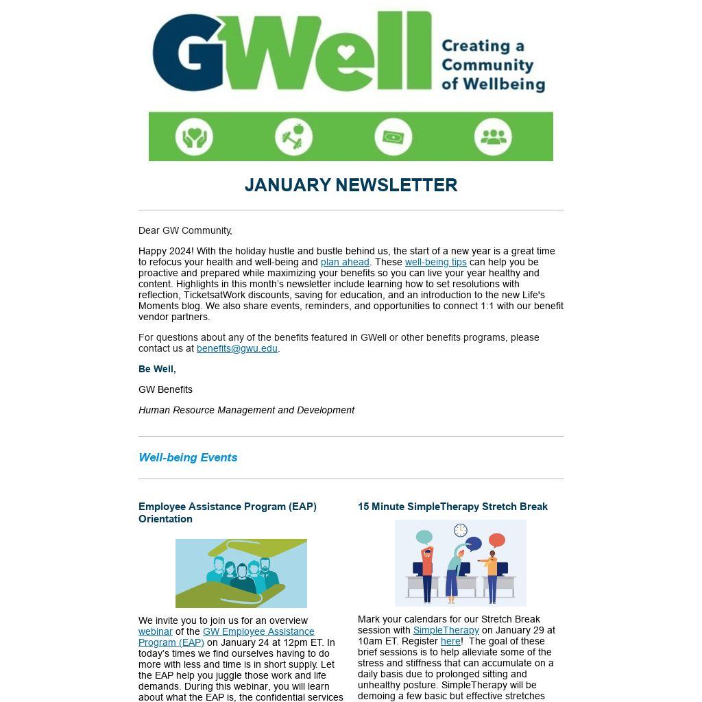 For questions about any of the benefits featured in GWell or other benefits programs, please contact us at benefits@gwu.edu.