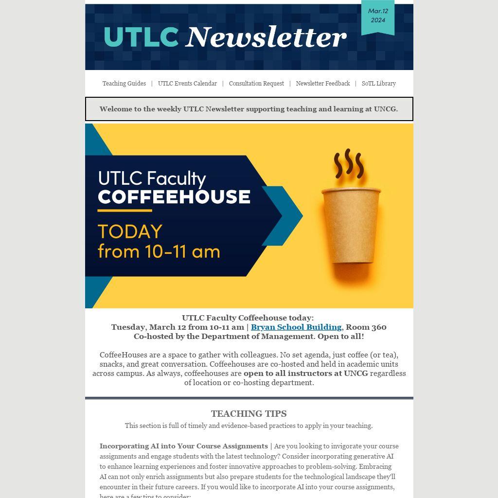 UTLC Faculty Coffeehouse today: