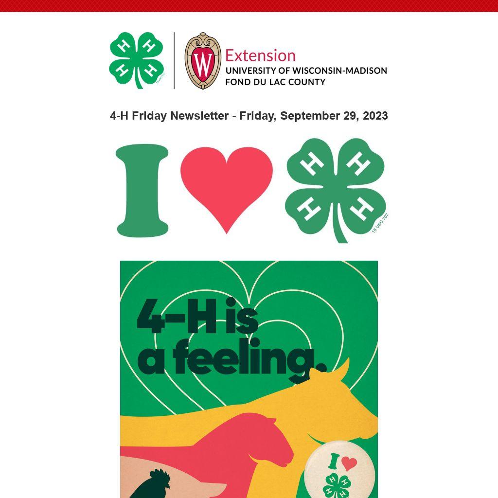 The theme of this year’s National 4-H Week is “I love 4-H.” 4-H is an opportunity for all as 4-H encourages kids to take part in hands-on learning experiences in areas such as health, science, agriculture, and civic engagement. Area youth in Fond du Lac County participate in various ways to celebrate throughout the week. Please share what your club is doing to celebrate this week!