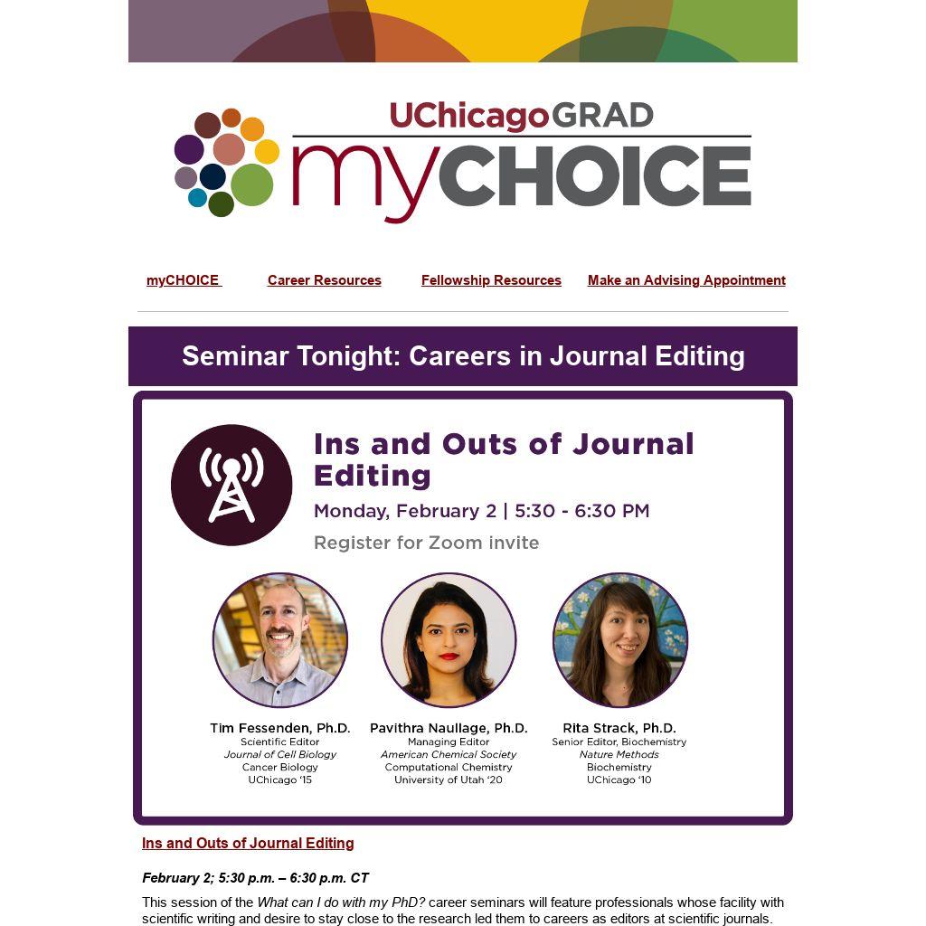 Seminar Tonight: Careers in Journal Editing | |