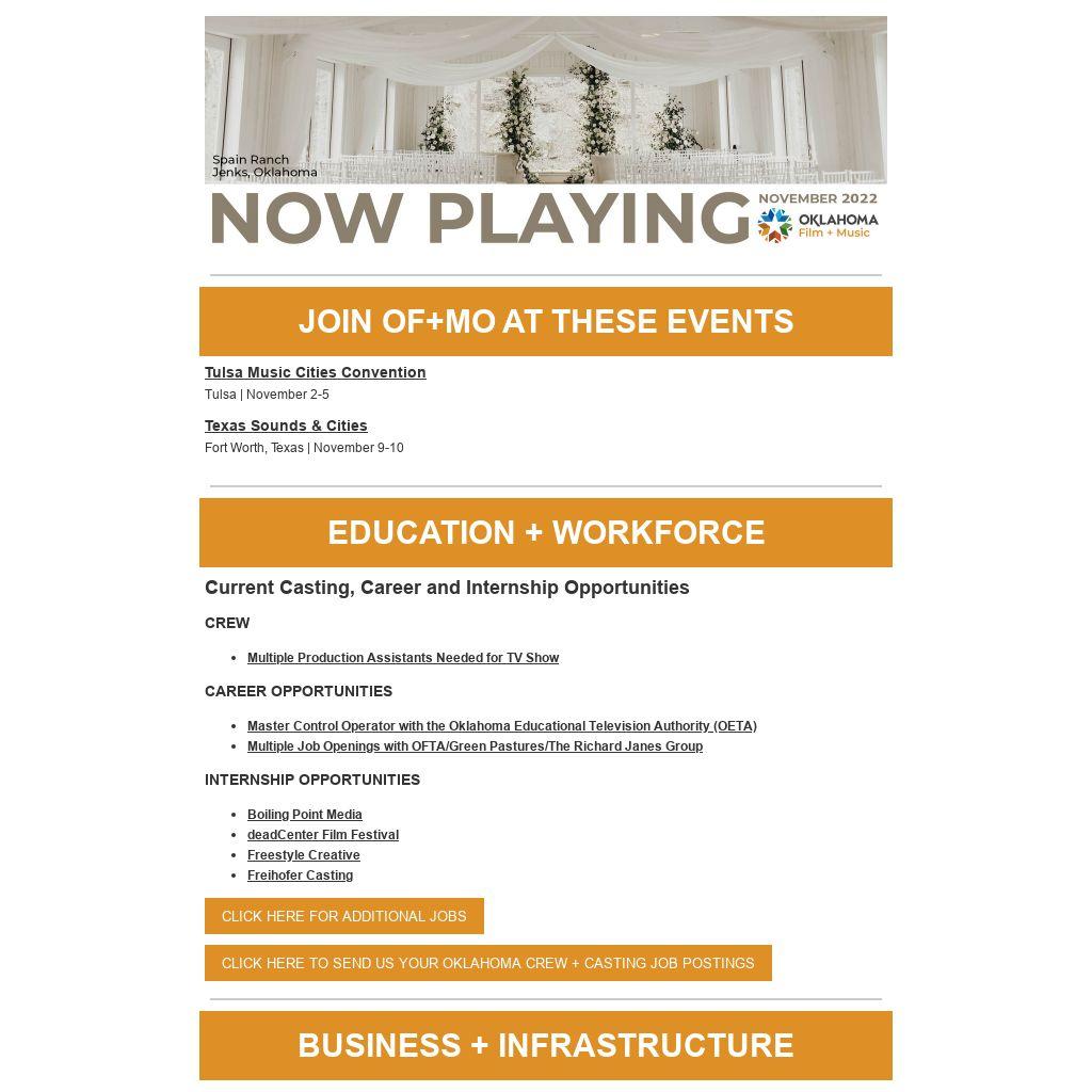 "If the right decisions are made, I think Oklahoma has a chance to bring in more crew, and more large-scale shows/features, which will only build up the economy. Bringing more local businesses and manpower will help productions coming in to cut down on the need to rent from other states and fly in crew from everywhere else."