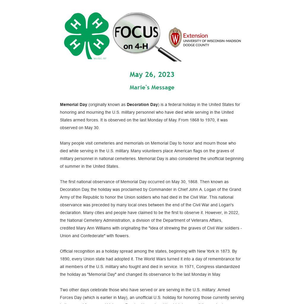 Hats off to Lakeside 4-H for serving and assisting 91 Veterans and their familes participate in the Badger Honor Flight to Washington D.C.! Lakeside 4-H participated in the return flight greeting that occured the weekend of May 20th.