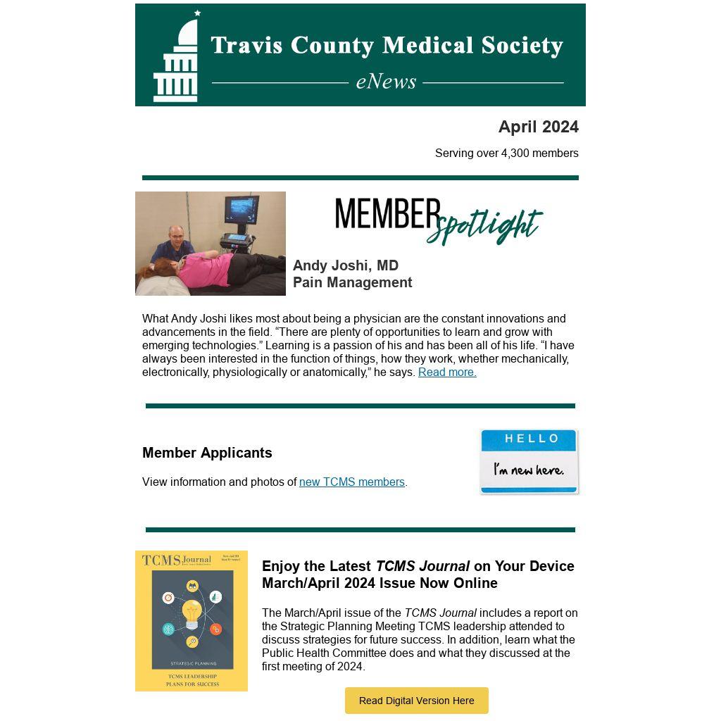 The March/April issue of the TCMS Journal includes a report on the Strategic Planning Meeting TCMS leadership attended to discuss strategies for future success. In addition, learn what the Public Health Committee does and what they discussed at the first meeting of 2024.