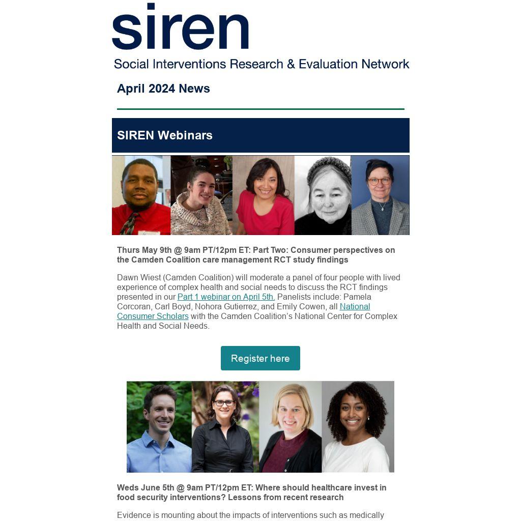 You are receiving this email because either you signed up to receive updates from SIREN or we feel that your work aligns well with SIREN and that the resources we provide will be of use to you. If you no longer wish to receive emails from SIREN please unsubscribe by clicking the link below.