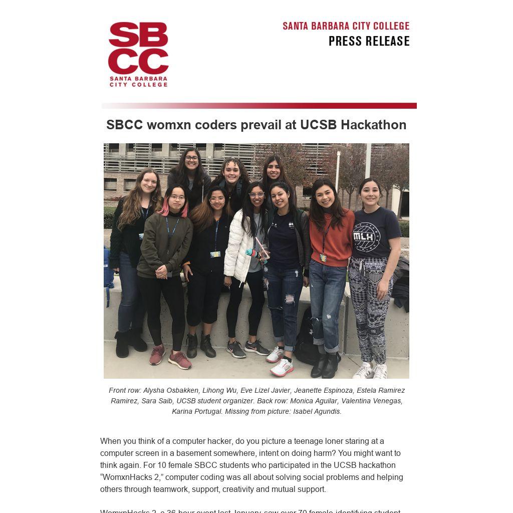 When you think of a computer hacker, do you picture a teenage loner staring at a computer screen in a basement somewhere, intent on doing harm? You might want to think again. For 10 female SBCC students who participated in the UCSB hackathon “WomxnHacks 2,” computer coding was all about solving social problems and helping others through teamwork, support, creativity and mutual support.