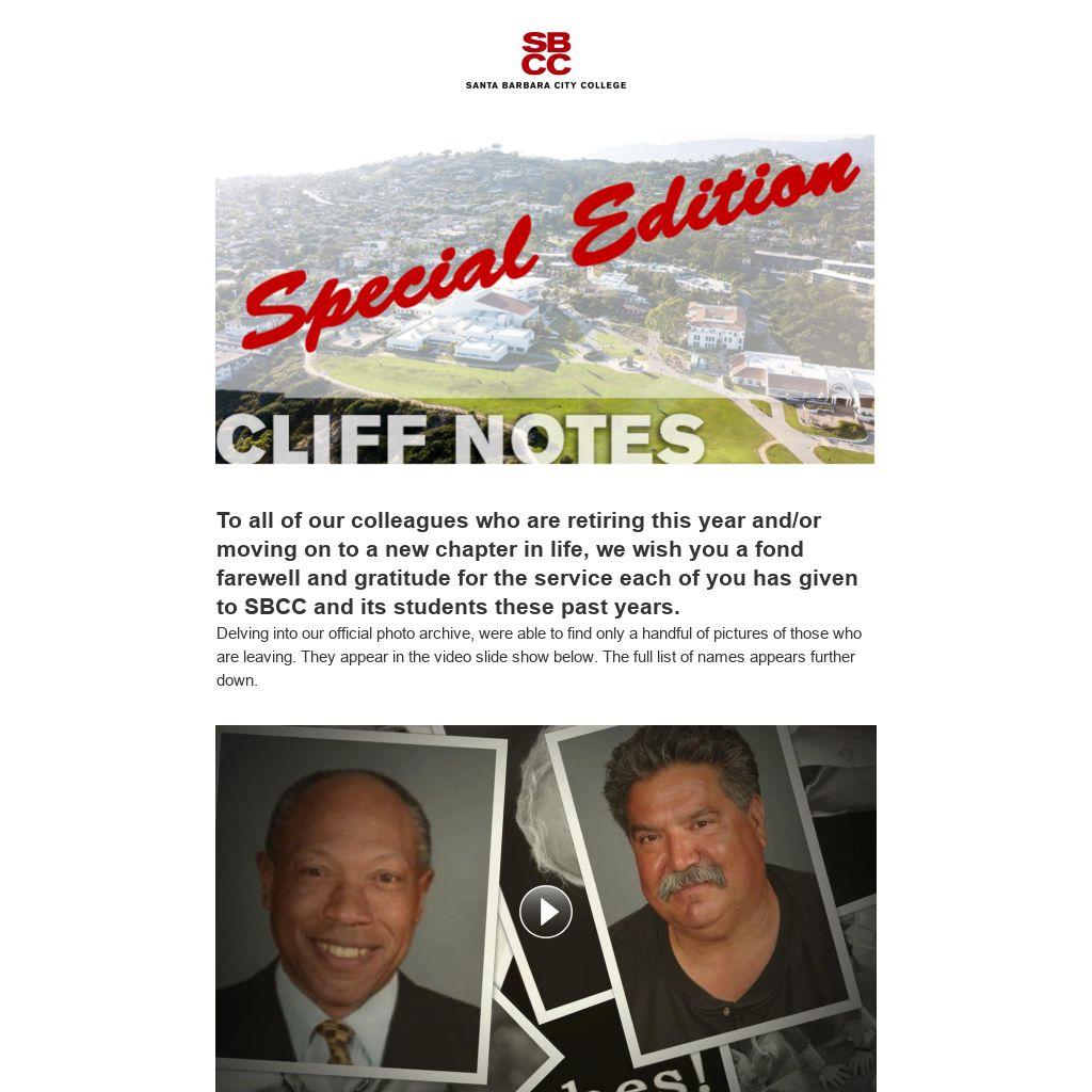 To all of our colleagues who are retiring this year and/or moving on to a new chapter in life, we wish you a fond farewell and gratitude for the service each of you has given to SBCC and its students these past years.Delving into our official photo archive, were able to find only a handful of pictures of those who are leaving. They appear in the video slide show below. The full list of names appears further down.