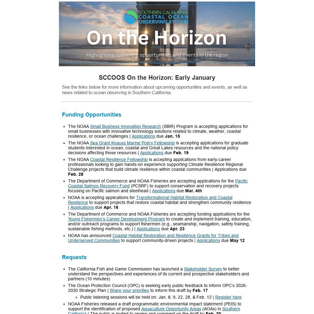SCCOOS On the Horizon: Early January |