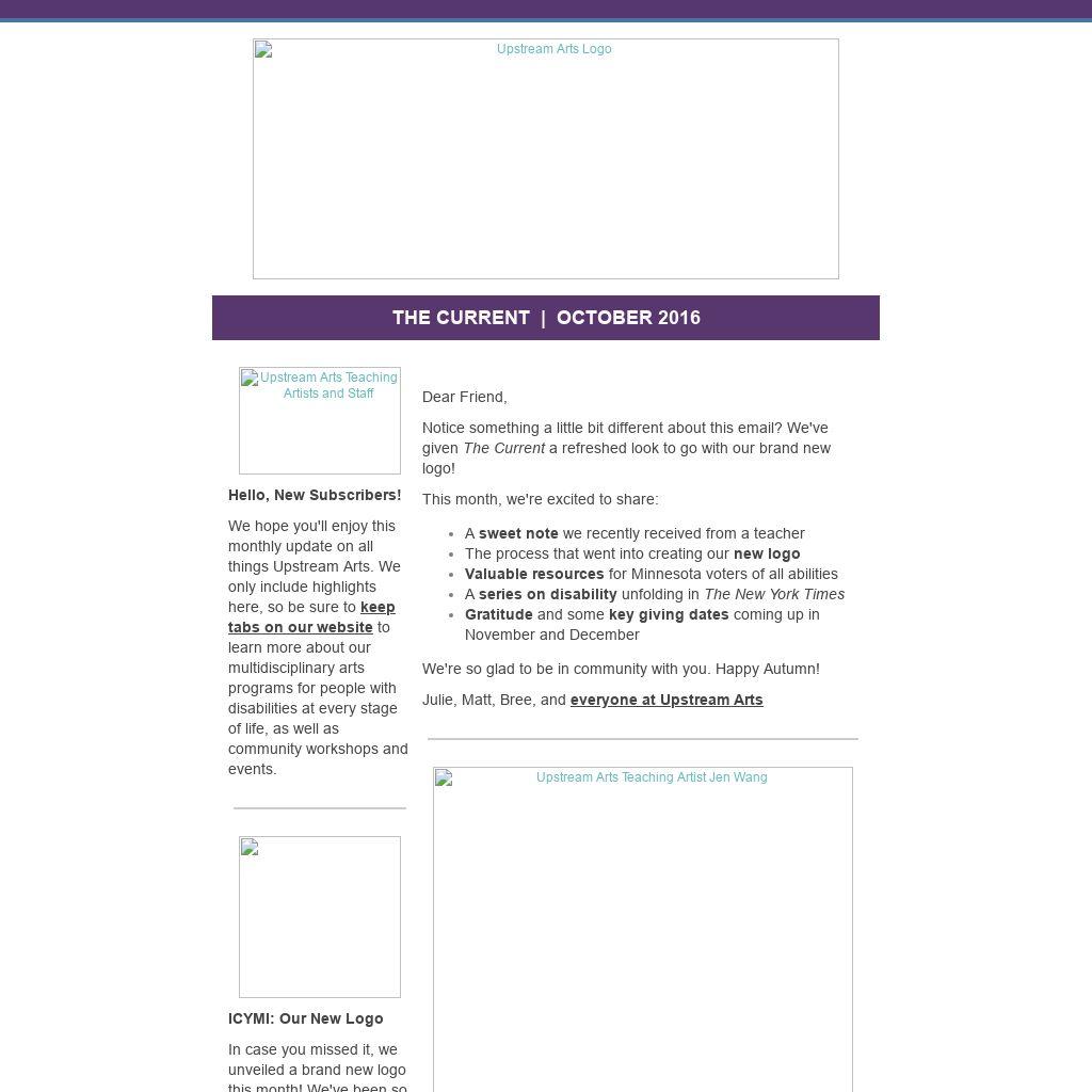 Dear Friend, Notice something a little bit different about this email? We've given The Current a refreshed look to go with our brand new logo!