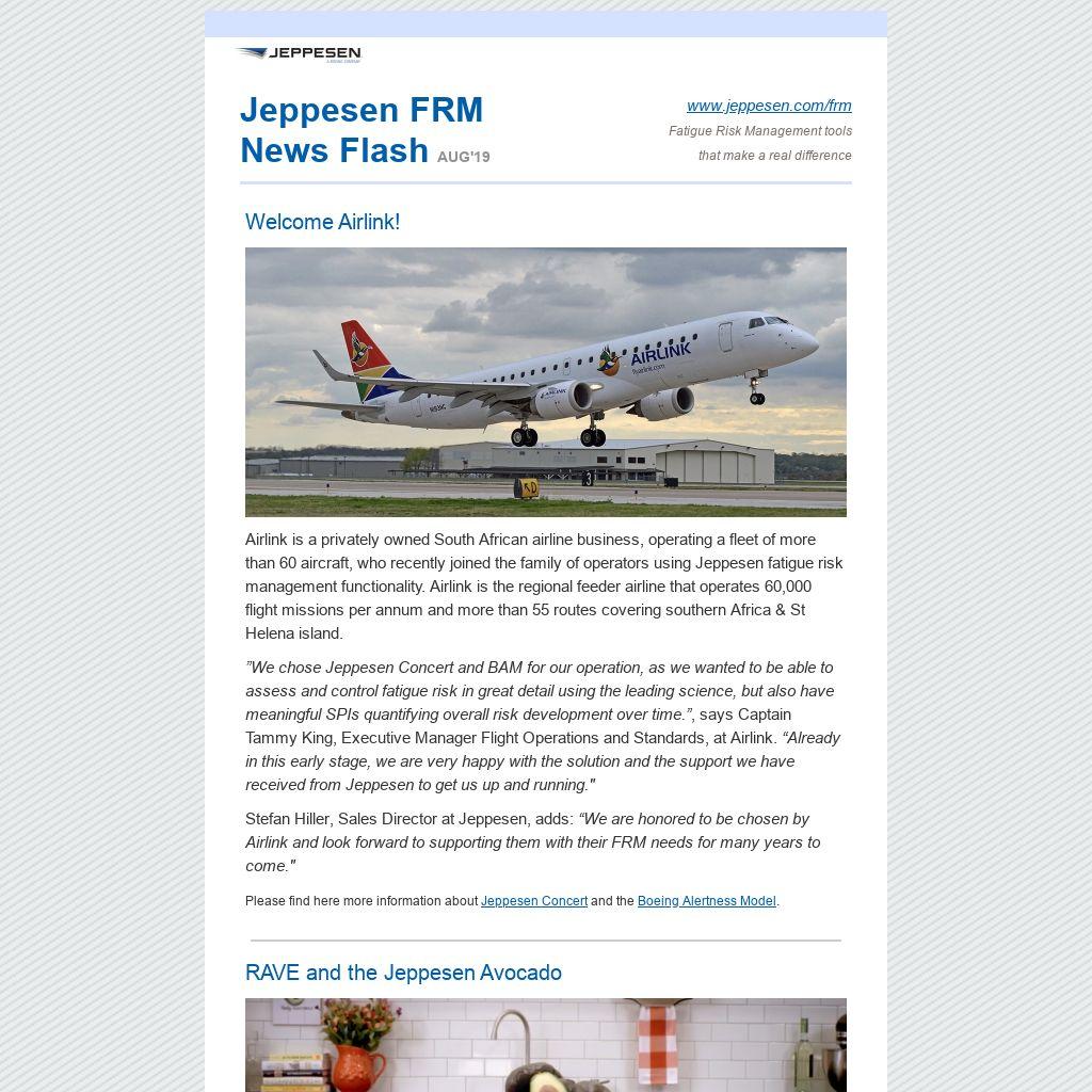 Stefan Hiller, Sales Director at Jeppesen, adds: “We are honored to be chosen by Airlink and look forward to supporting them with their FRM needs for many years to come."