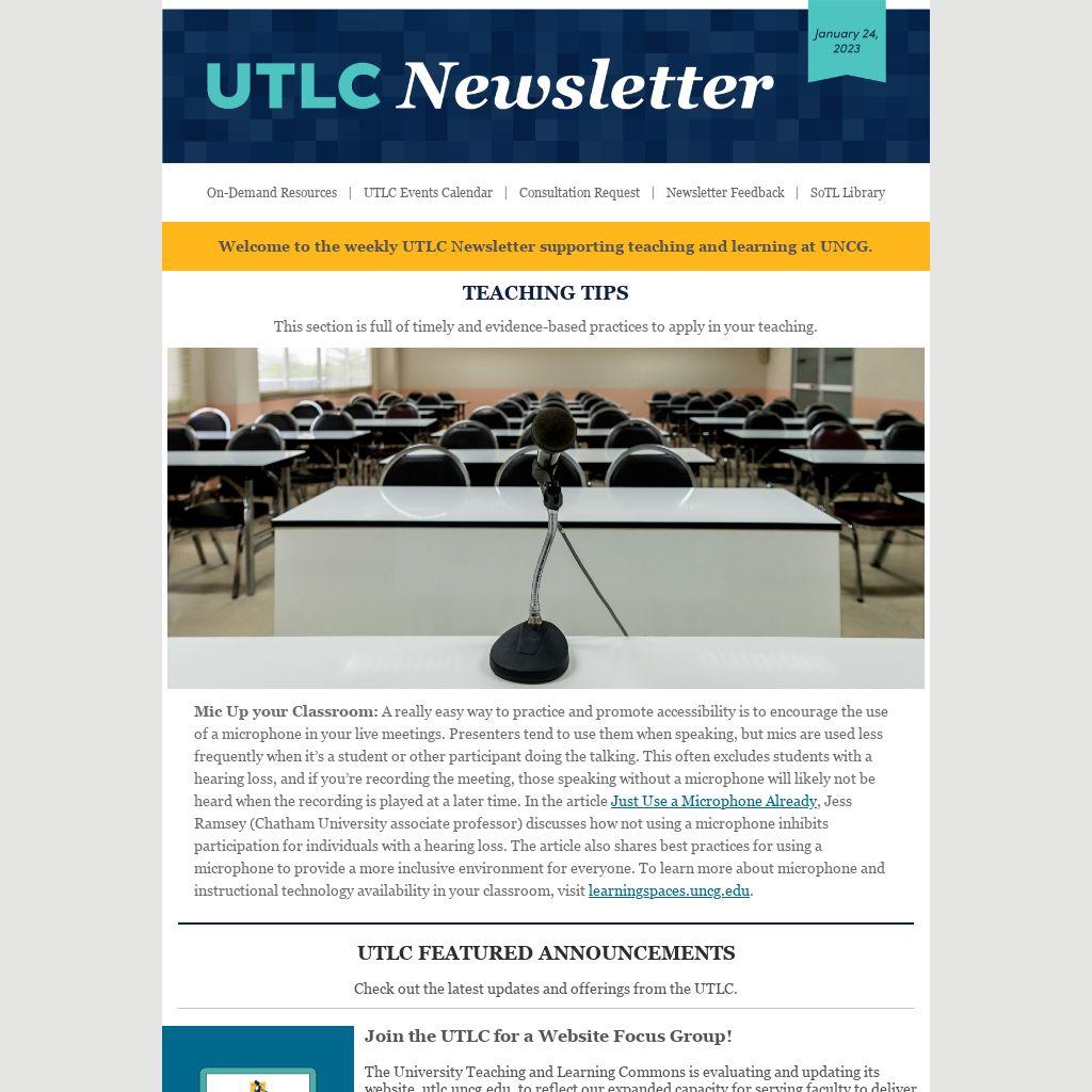 Welcome to the weekly UTLC Newsletter supporting teaching and learning at UNCG.
