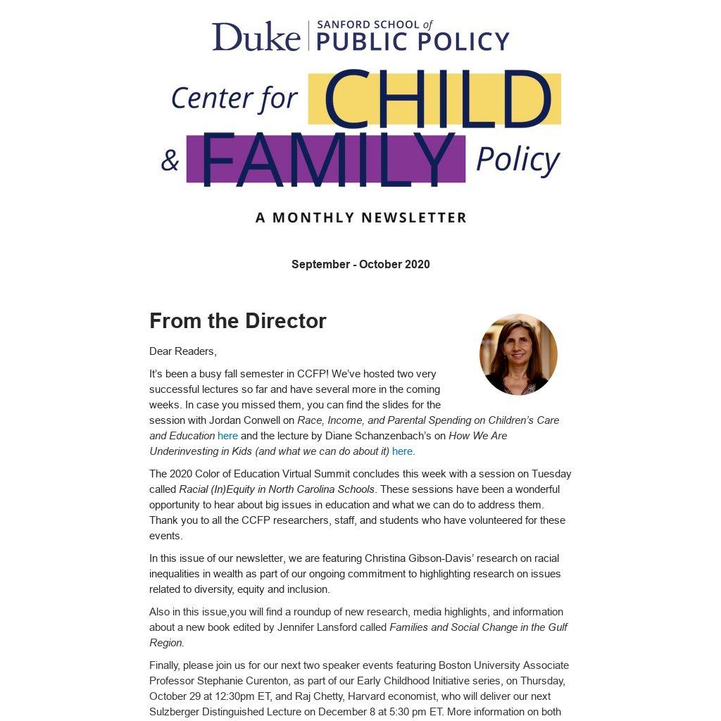 In this issue of our newsletter, we are featuring Christina Gibson-Davis’ research on racial inequalities in wealth as part of our ongoing commitment to highlighting research on issues related to diversity, equity and inclusion.