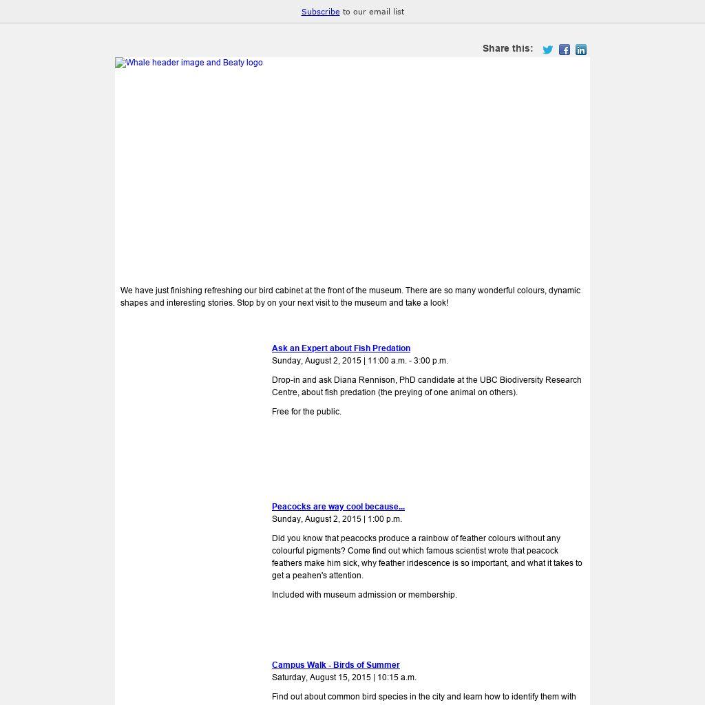On Saturday, October 17, 2015 the Beaty Biodiversity Museum is turning 5! Save the date for a family-friendly birthday party from 10:00 a.m. - 3:30 p.m. and a members-only Cider Celebration from 6:30 p.m. - 9:30 p.m.. More details coming soon!