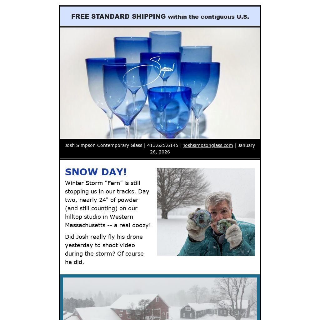 Today, with the crew snowed in at home, Josh takes the long view and optimistically fills the furnace with fresh glass to be melted for the work week ahead.