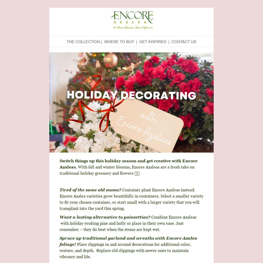Switch things up this holiday season and get creative with Encore Azaleas. With fall and winter blooms, Encore Azaleas are a fresh take on traditional holiday greenery and flowers 🌹🌿