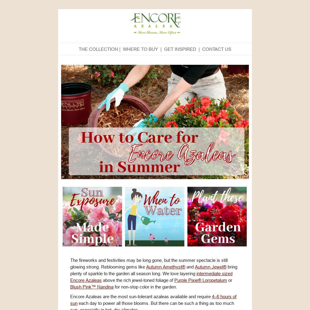 Scorched leaves on the top of the plant are a clue that plants might need more shade. Our exposure guide will help you locate your azaleas for maximum performance and bloom production. And as the temperatures stay high, be sure to check out our tips on caring for azaleas in the summer.