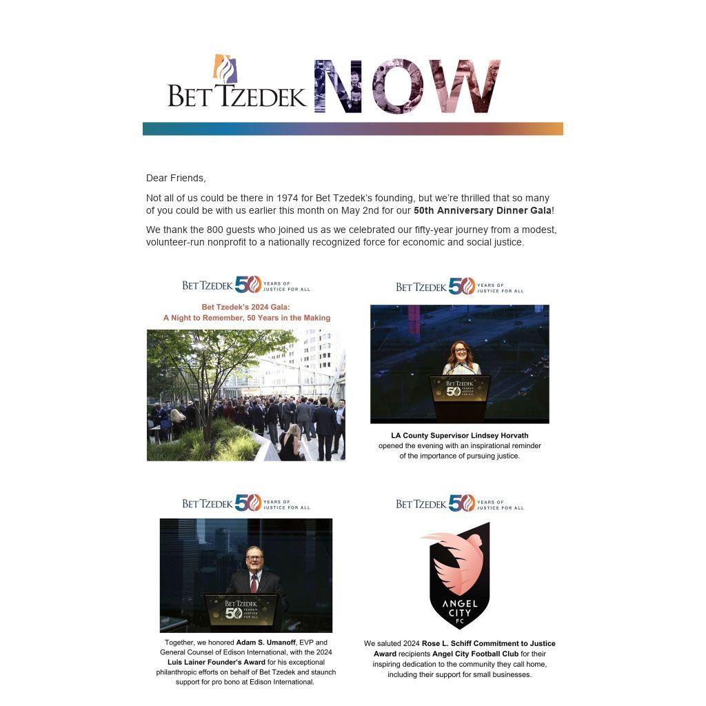 While there is no doubt Bet Tzedek has grown, it was clear that we have retained a very special sense of purpose and community. In the room at the gala earlier this month were longtime community partners, as well as new allies, each reflecting Los Angeles’ beautiful diversity. We also saw supporters who brought their partners, children, and grandchildren, the future bearers of Bet Tzedek’s torch.
